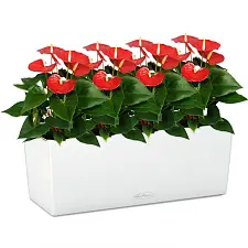 Красные антуриумы в кашпо Lechuza Balconera Color 50